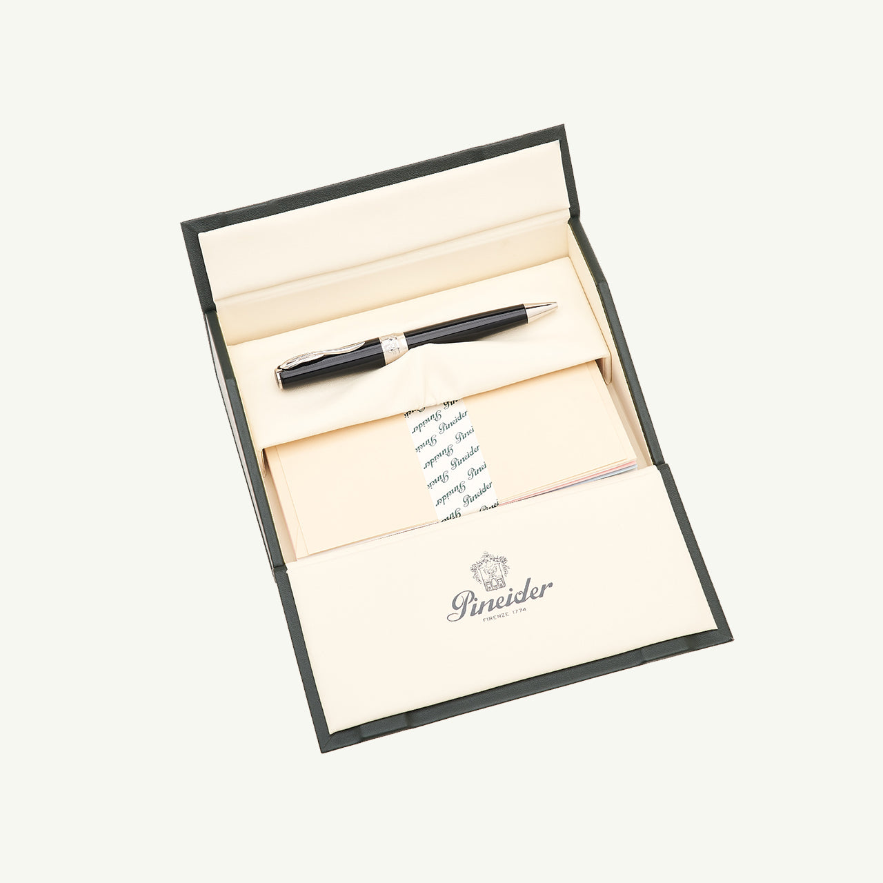 The Classic Palladium ballpoint from Pineider is a most distinguished writing instrument, crafted in Italy from fine resin and steel with palladium-plated details that gleam ever so handsomely. Its exclusive design features a rotating magnetic closure and an ink formula devised to never dry out, ensuring a smooth, constant hand from the first word to the last. More than a pen, it is a small work of art. An emblem of timeless elegance, ready to turn every note, list, or letter into something splendid.