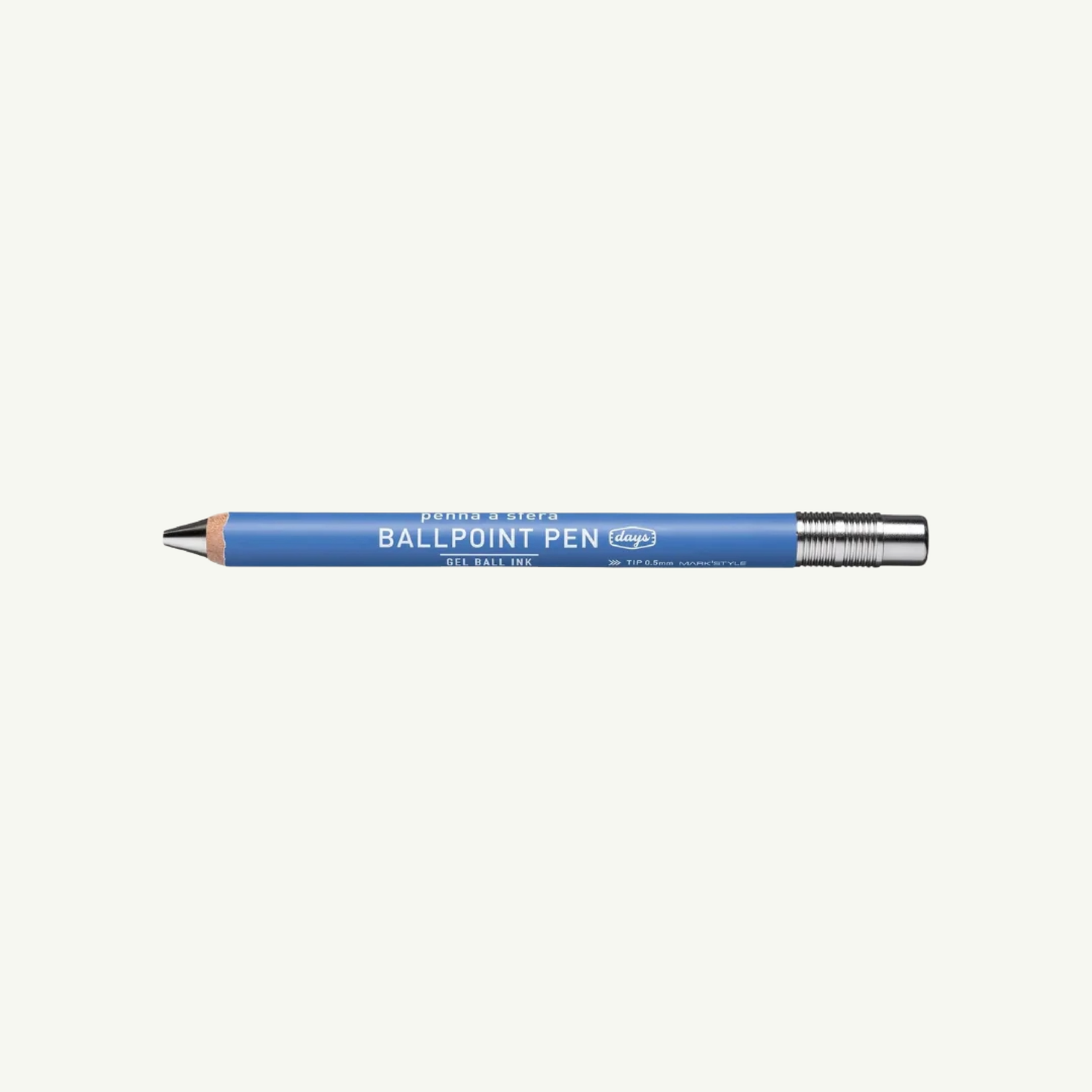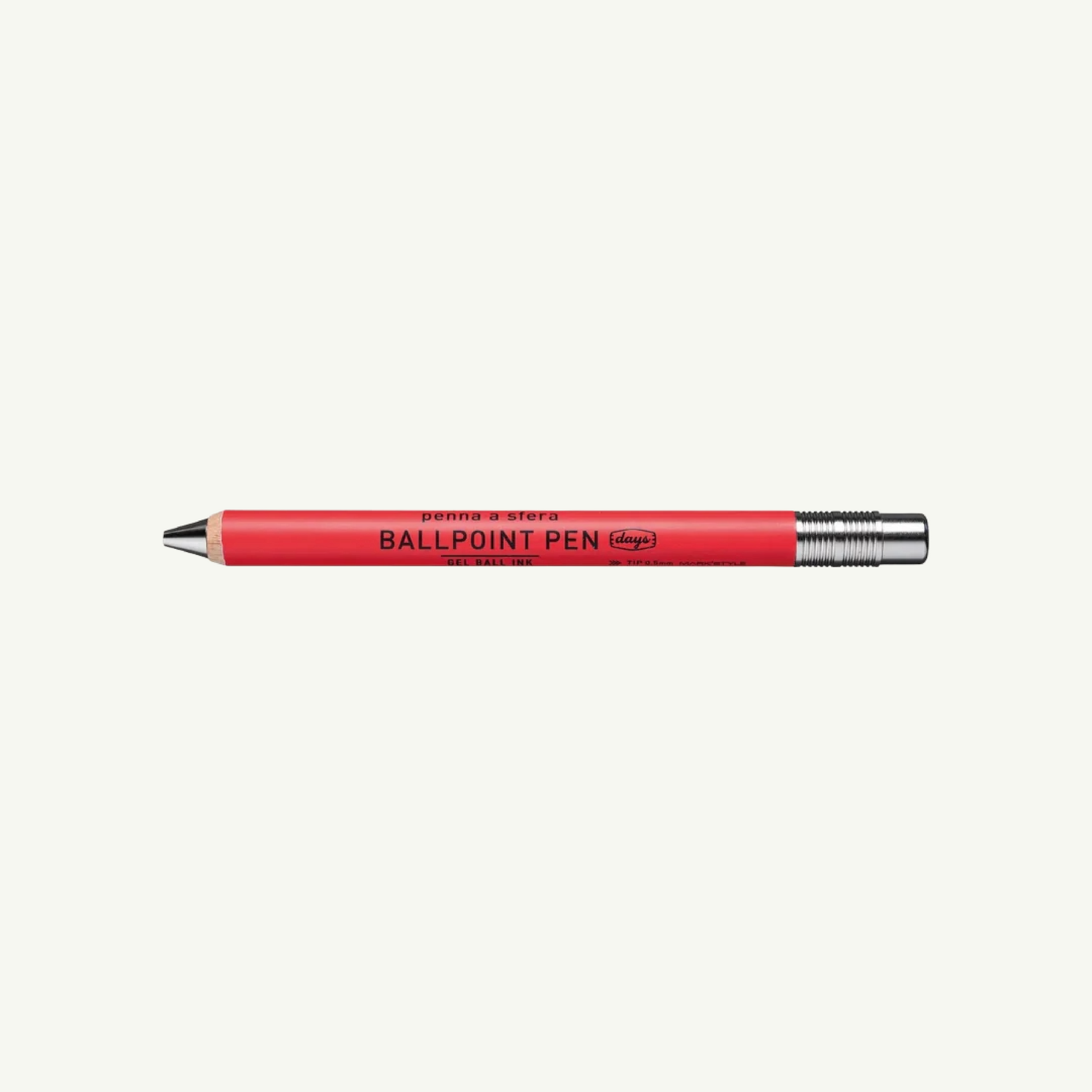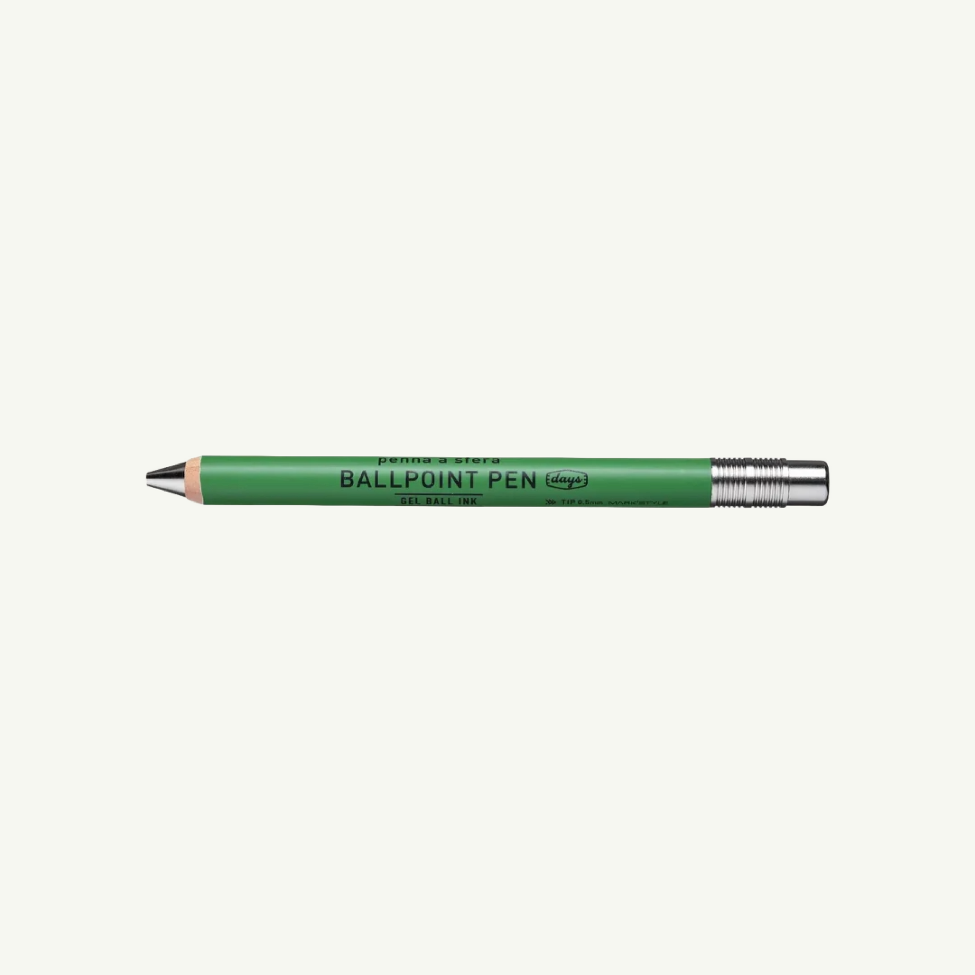 Emerging from a charming triangular box, this ballpoint pen boasts a sleek, round form with vibrant colored wooden barrel. Typography in five languages - English, French, Italian, Spanish, and German - stylishly spells out 'ballpoint pen.' With a 1.0mm wooden grip, the pen offers easy handling. The 0.5mm gel ink ensures stress-free, smooth writing.