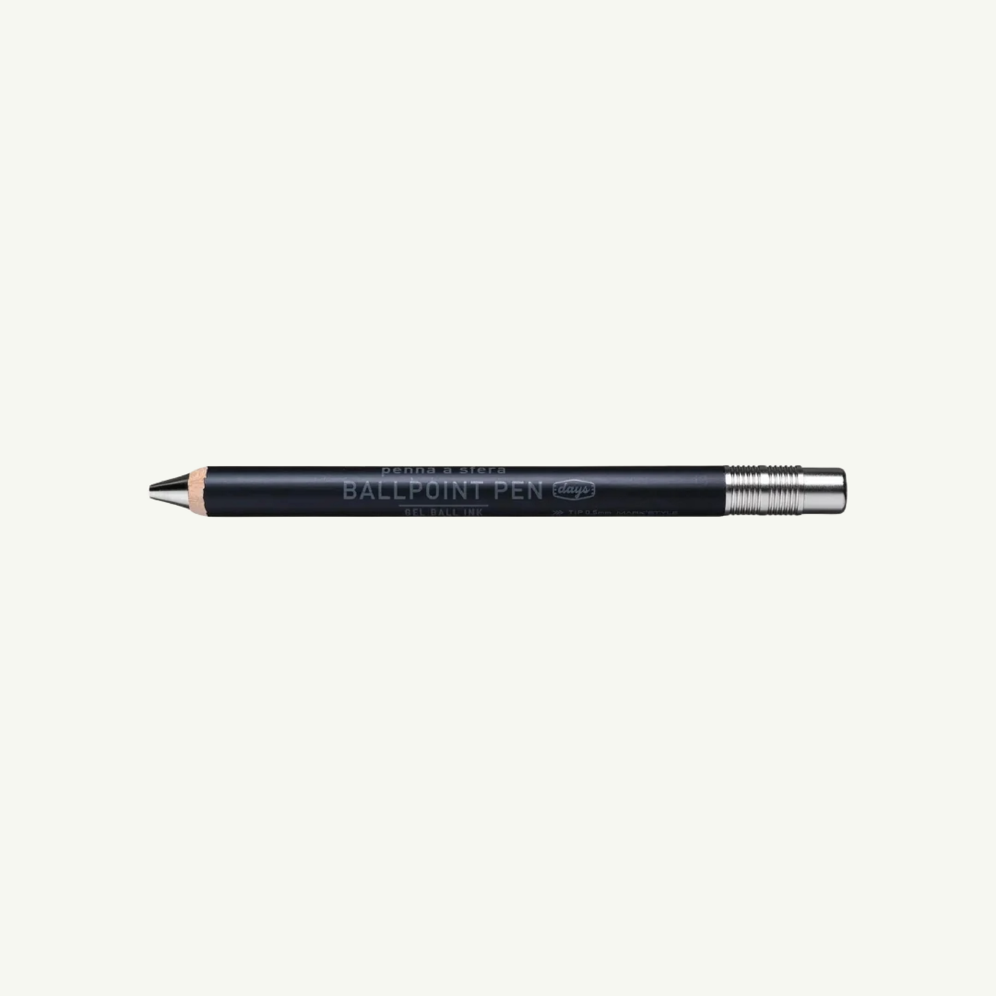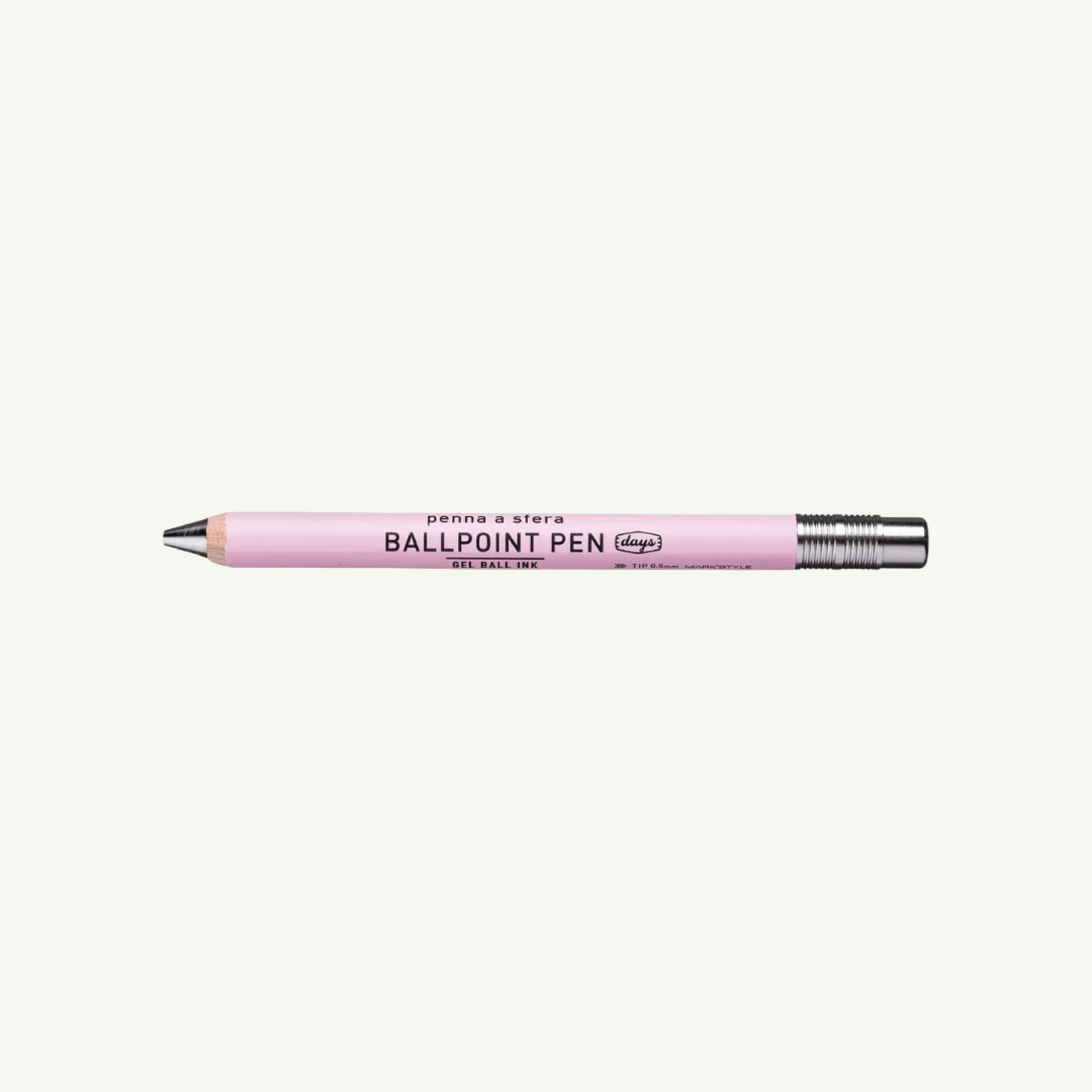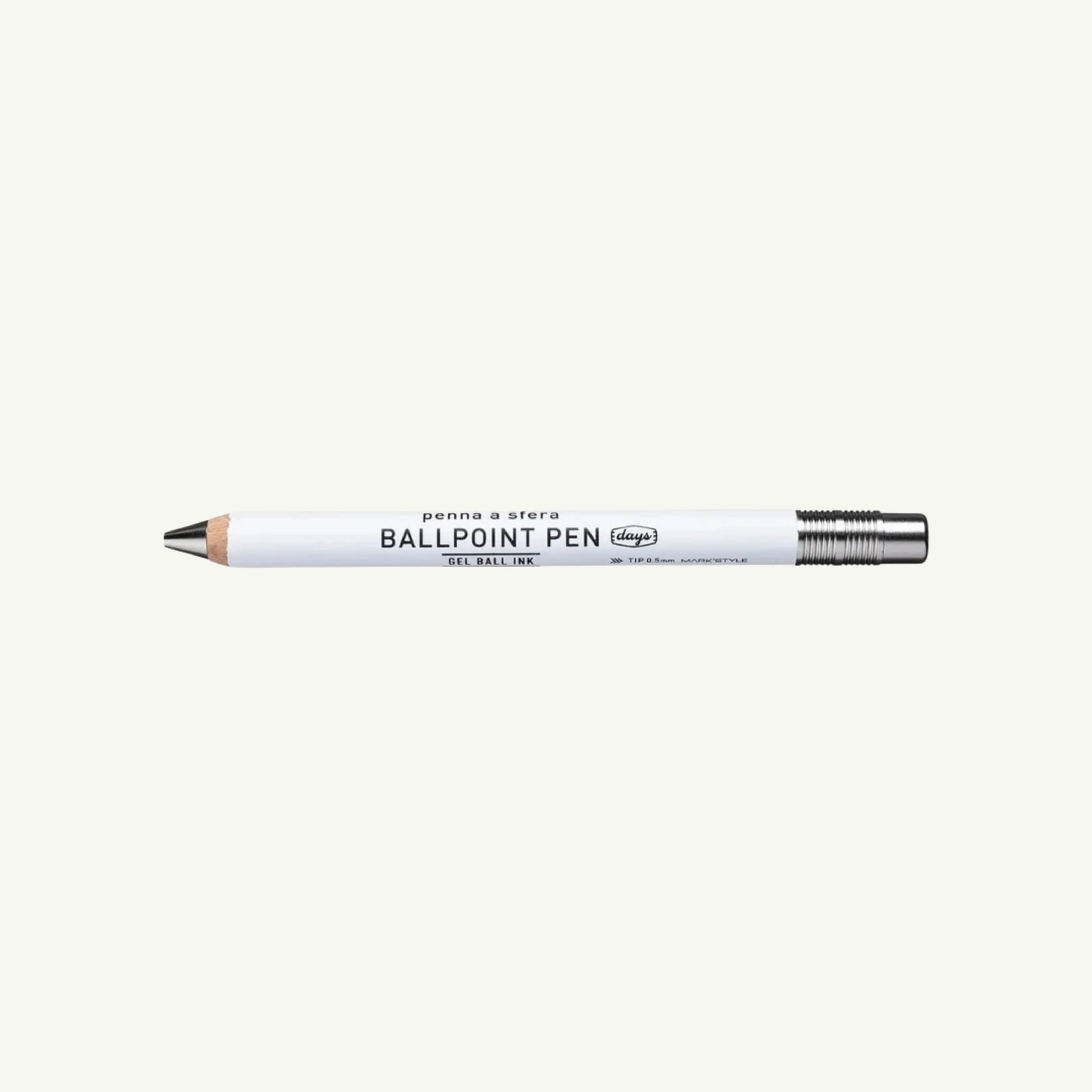 Emerging from a charming triangular box, this ballpoint pen boasts a sleek, round form with vibrant colored wooden barrel. Typography in five languages - English, French, Italian, Spanish, and German - stylishly spells out 'ballpoint pen.' With a 1.0mm wooden grip, the pen offers easy handling. The 0.5mm gel ink ensures stress-free, smooth writing.