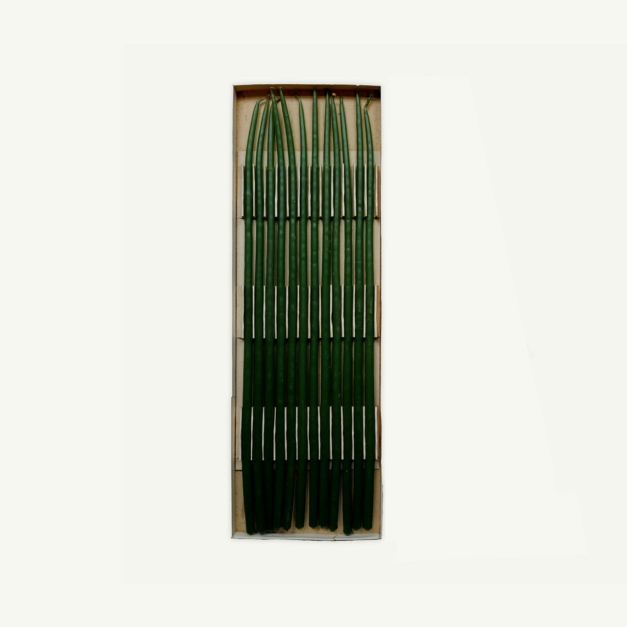 Strike a match and step into the Panton era with these avocado-green tapers from the fabulous '70s. A full set of 12, still in their original box—never burned, just begging for a mod moment.