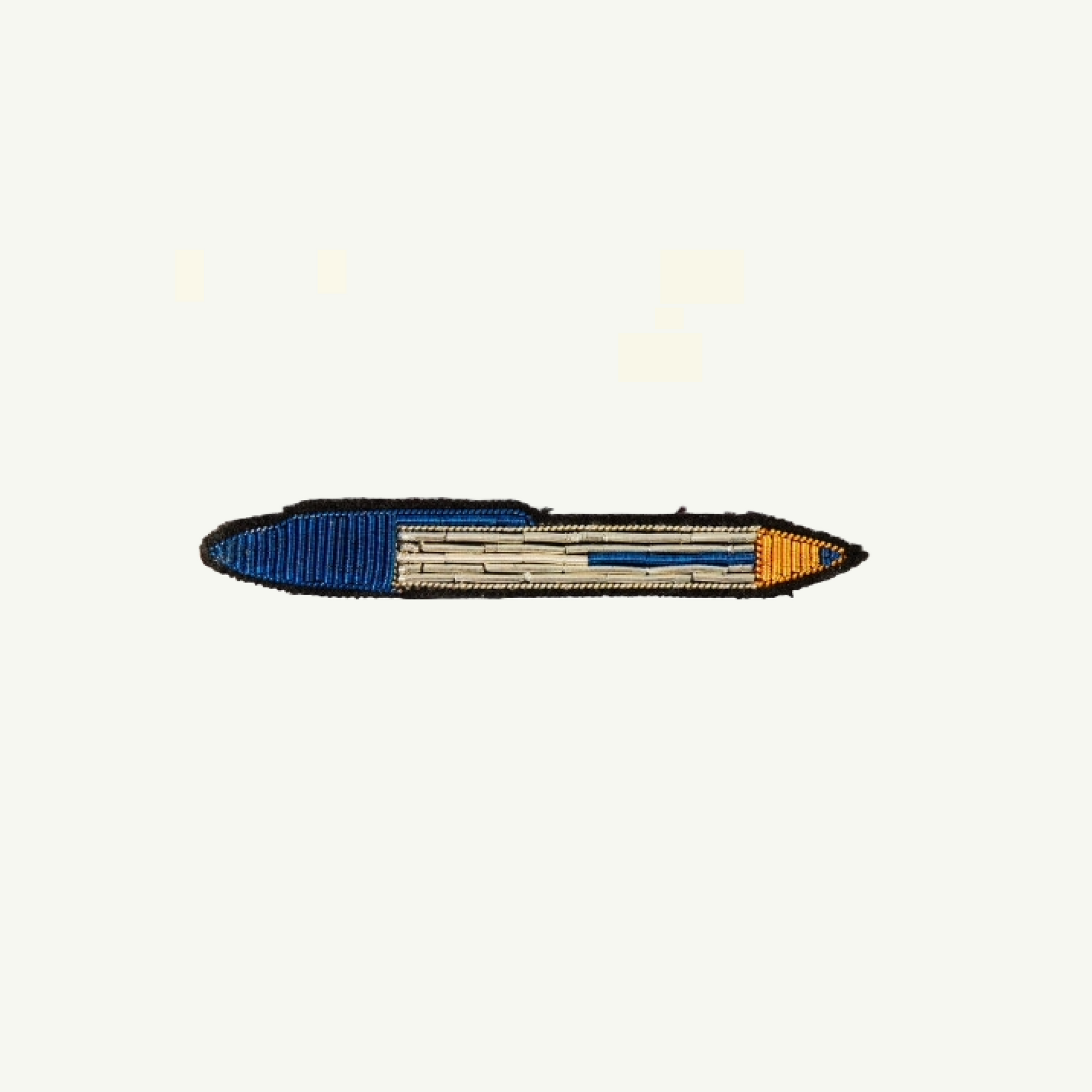During an impromptu jaunt in Paris, Mr. Boddington felt as though his Chambray shirt was sorely lacking a certain…je ne sais quoi. It was then he found just what he was seeking in Macon & Lesquoy’s hand embroidered brooches.