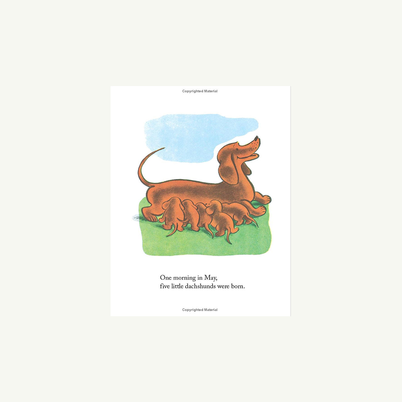 One morning in May five little dachshunds are born. One grows up to be the longest of all! Pretzel easily wins a blue ribbon at the dog show and the admiration of everyone—everyone except Greta, the little dachshund across the street, who doesn't care for long dogs. But Pretzel is able to use his unique gift to win Greta over, and before long they have puppies of their very own.