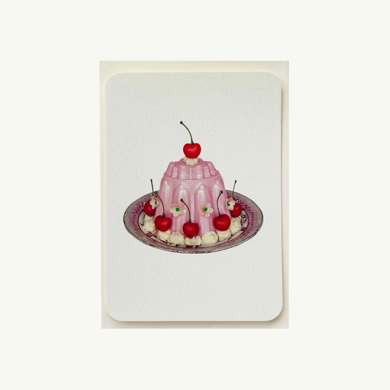 Inspired by vintage blancmange moulds and British dessert tables, this playful design brings culinary nostalgia to life. Luxury A6 greeting card, printed in England on Italian-milled paper. Hand finished with rounded corners and supplied with a matching envelope. Blank inside for your own message.