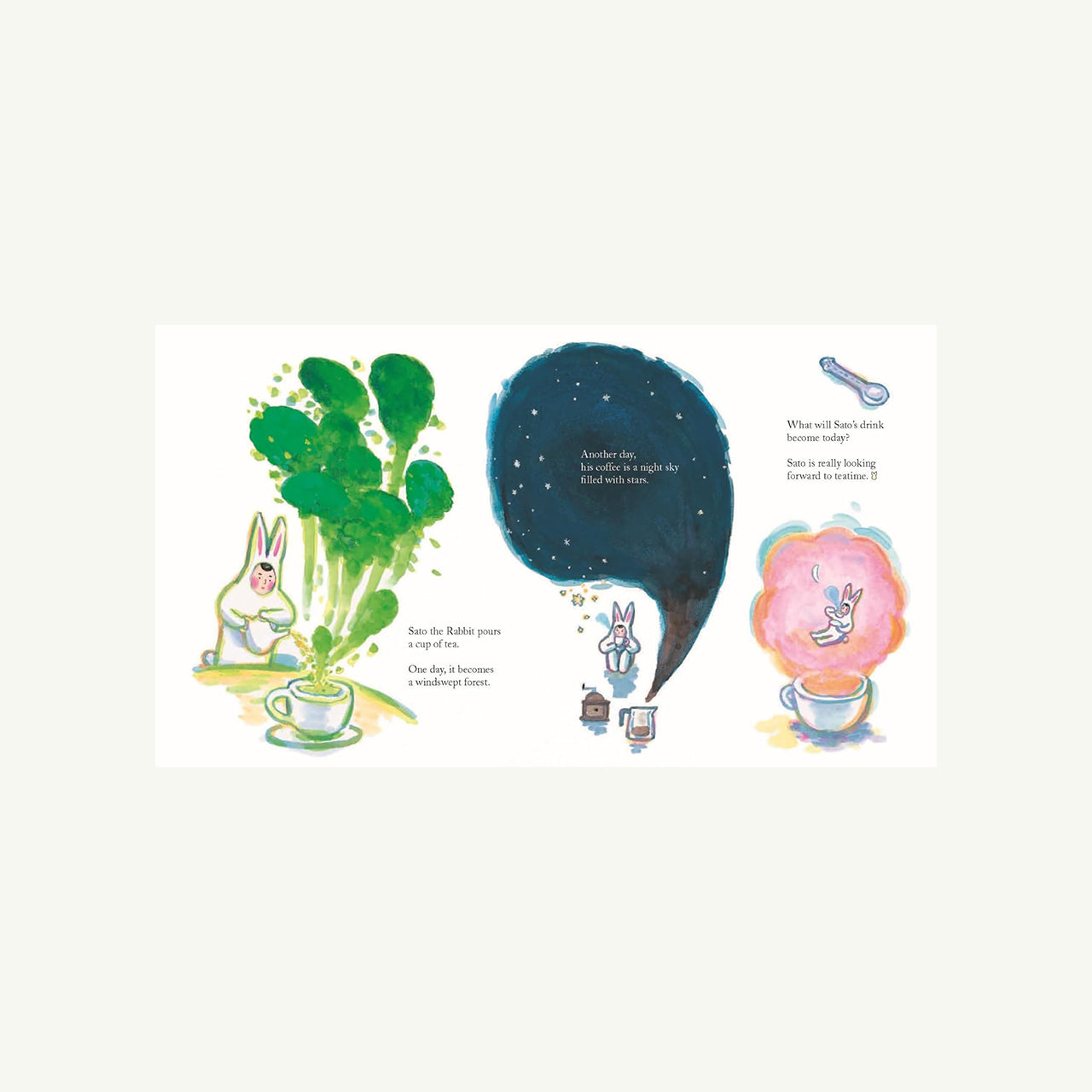 When Sato pours himself a cup of tea, he doesn’t merely sip it — he sails it. Off he drifts across a sea of steaming amber, where sugar cubes become islands and teapots bubble like volcanoes. Such is the way of Sato, the most curious of rabbits, who finds whole worlds tucked inside the ordinary.