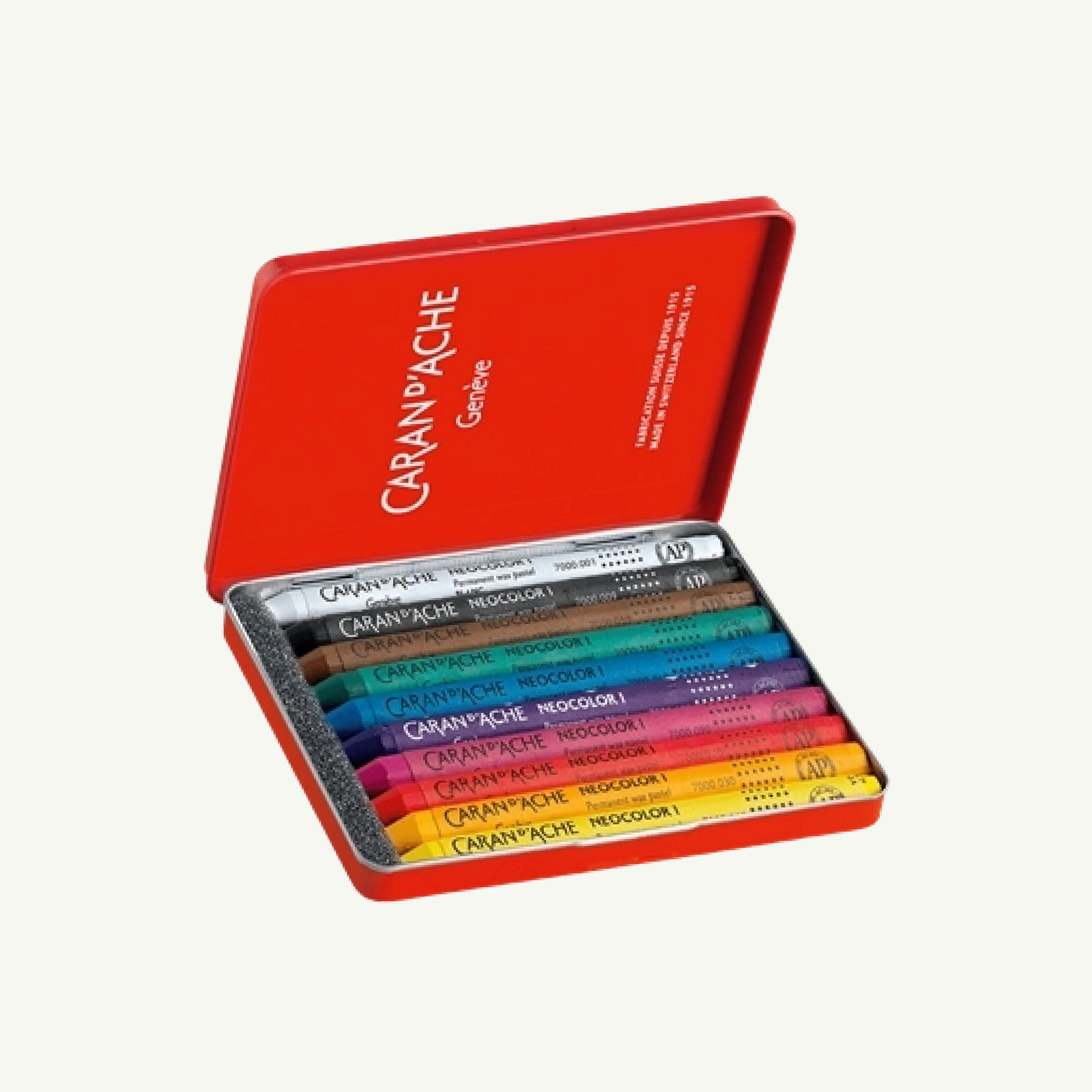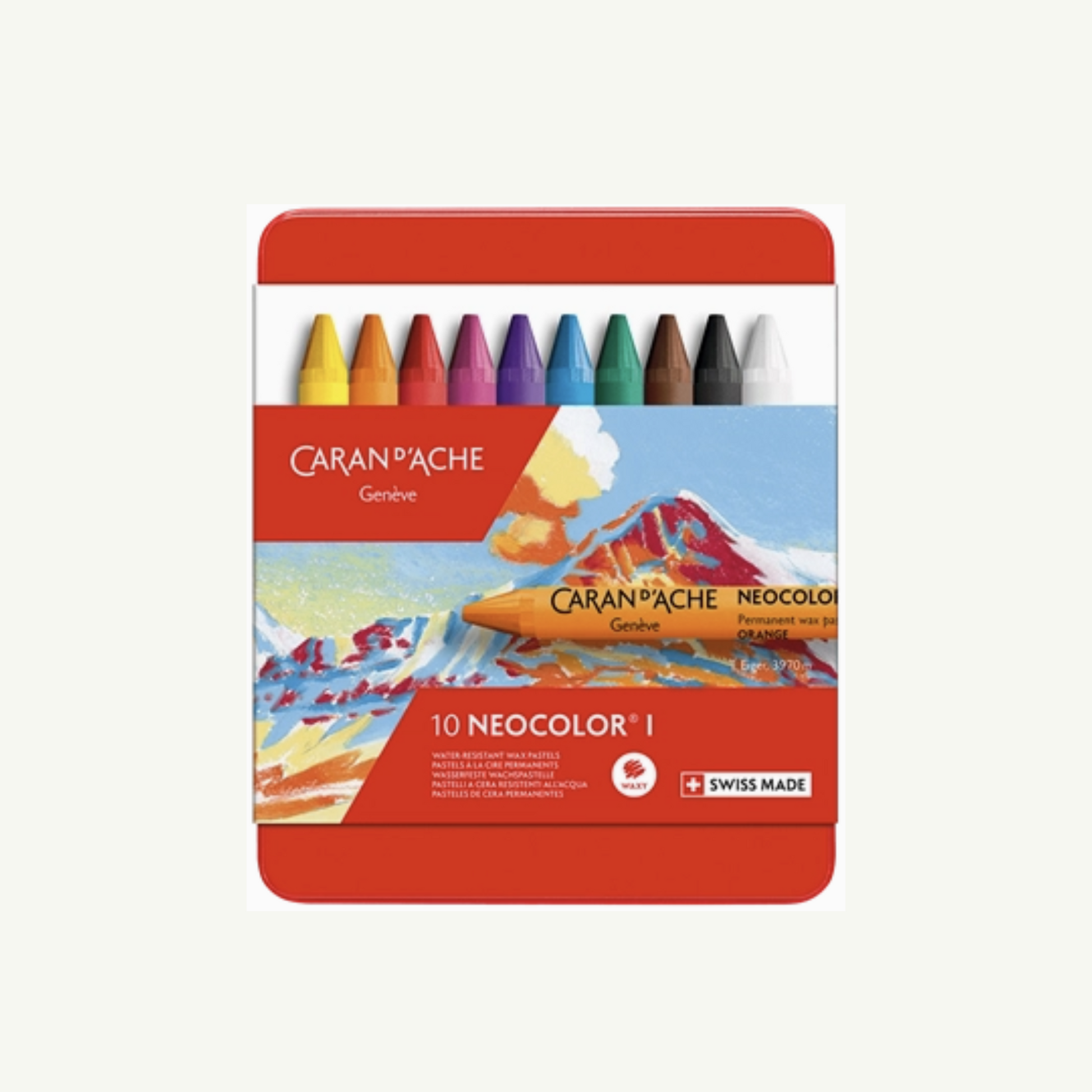 Created in 1952, the NEOCOLOR™ I wax pastel quickly became a pioneer in artistic education and a favorite of artists, designers, and students alike. Water-resistant with a creamy texture, it offers bright, permanent colours, excellent lightfastness, and superior covering power. With a versatile 8.65 mm diameter, it works beautifully on paper, cardboard, glass, wood, leather, fabric, or stone, adapting easily to blending, polishing, overlays, or sgraffito.