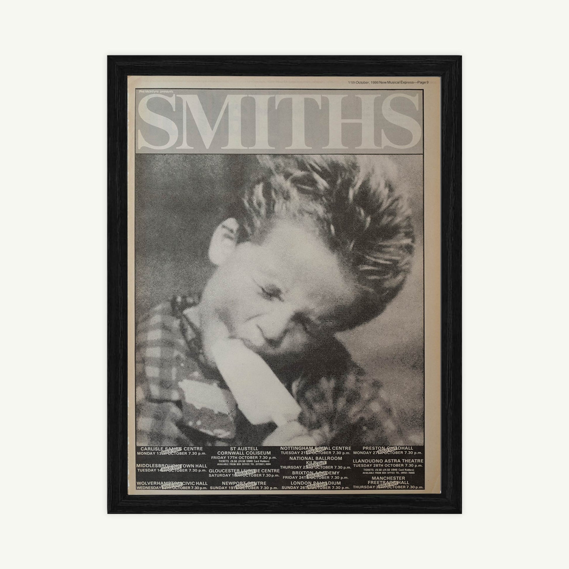 For the most devoted melancholics and dandies alike: A tip of the hat to The Smiths, this most vintage concert poster advertisement pays homage to the moody majesty of Morrissey and his merry band of melancholia-makers. Perfect for adorning the walls of literate romantics and 80s vinyl snobs. Sized just right for a 12 x 16" frame.