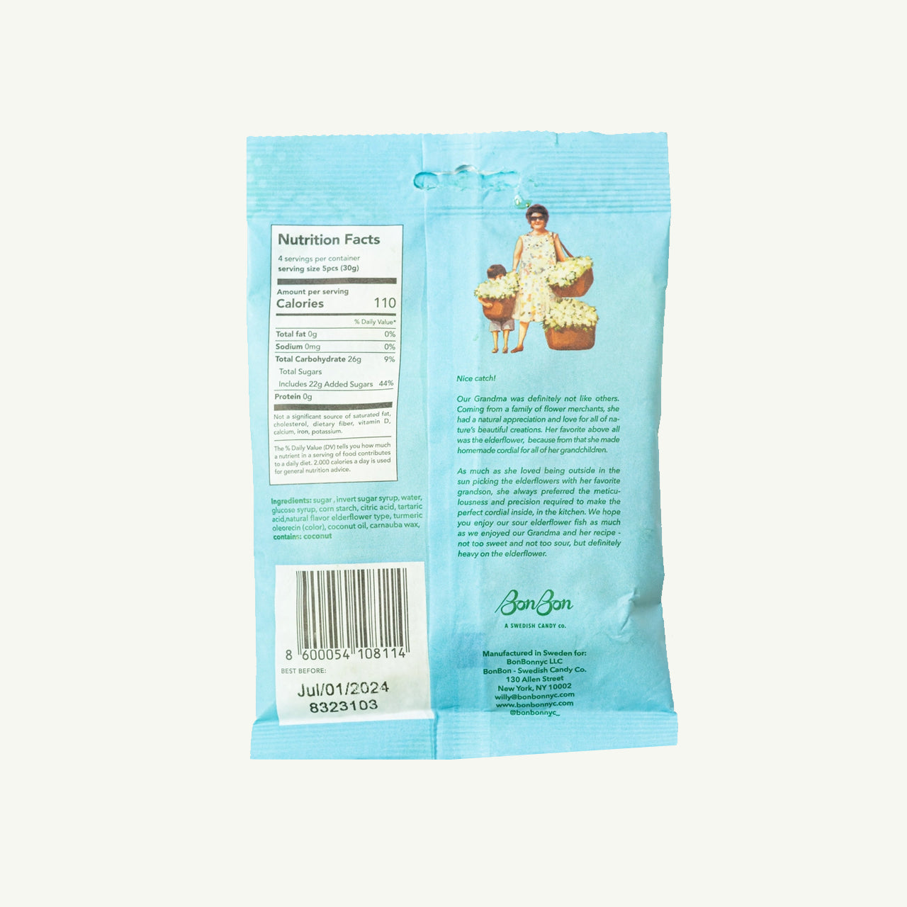 BonBon’s Sour Elderflower Fish are a nostalgic nod to the homemade elderflower cordial our Swedish grandparents brewed during those fleeting, golden summer months. Elderflower, you see, is one of BonBon’s four cherished “flavors of summer,” and these little fish capture its freshness with delightful precision.