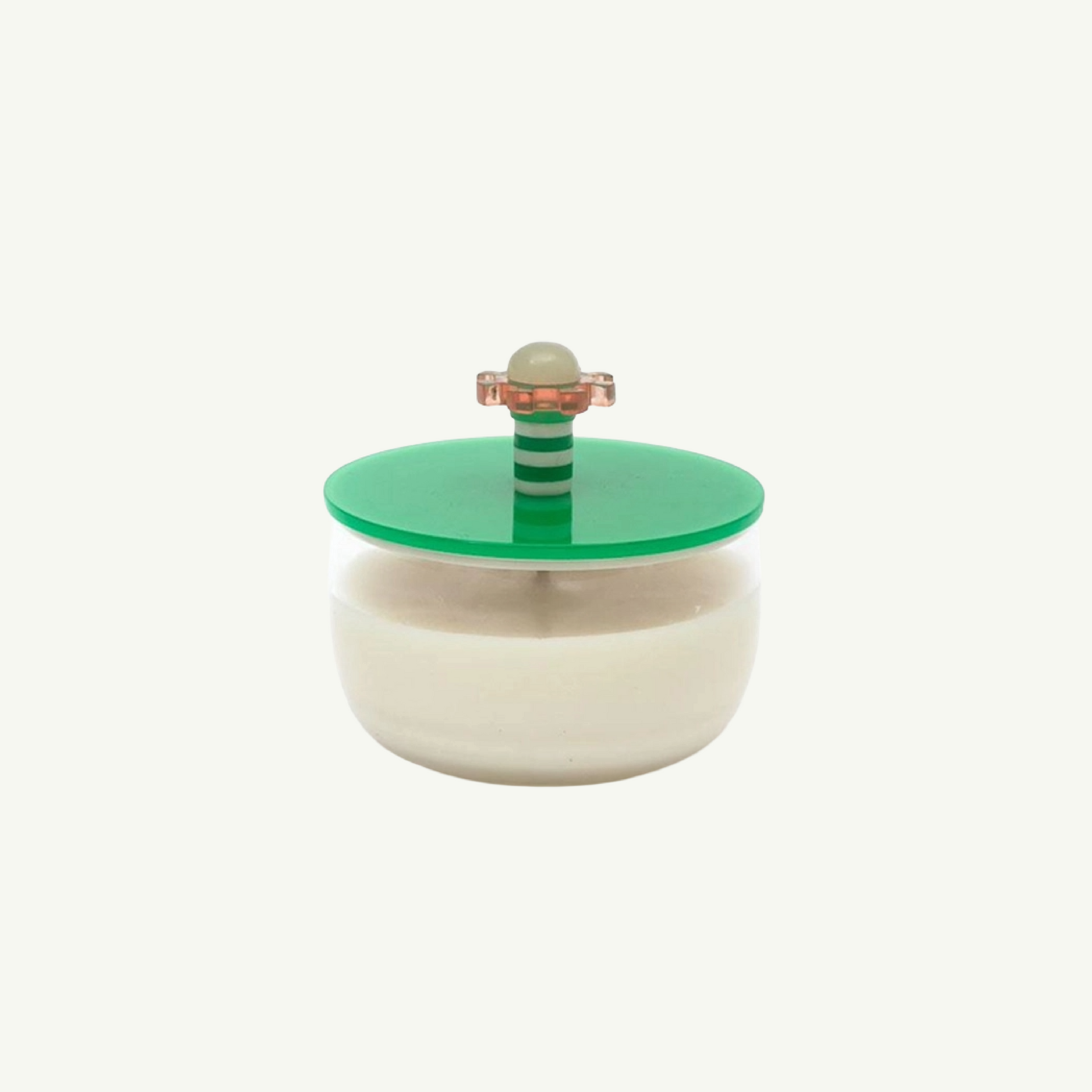 Small in size but big on charm, this lotus-scented soy candle (2.5 inches tall and just under 1 inch wide) brings a bloom of calm to any space. Topped with a delicate floral accent made from recycled acetate (yes, the glamorous leftovers of glasses), each piece is one of a kind—just like you. Light it up and let serenity sparkle in eco-friendly style.
