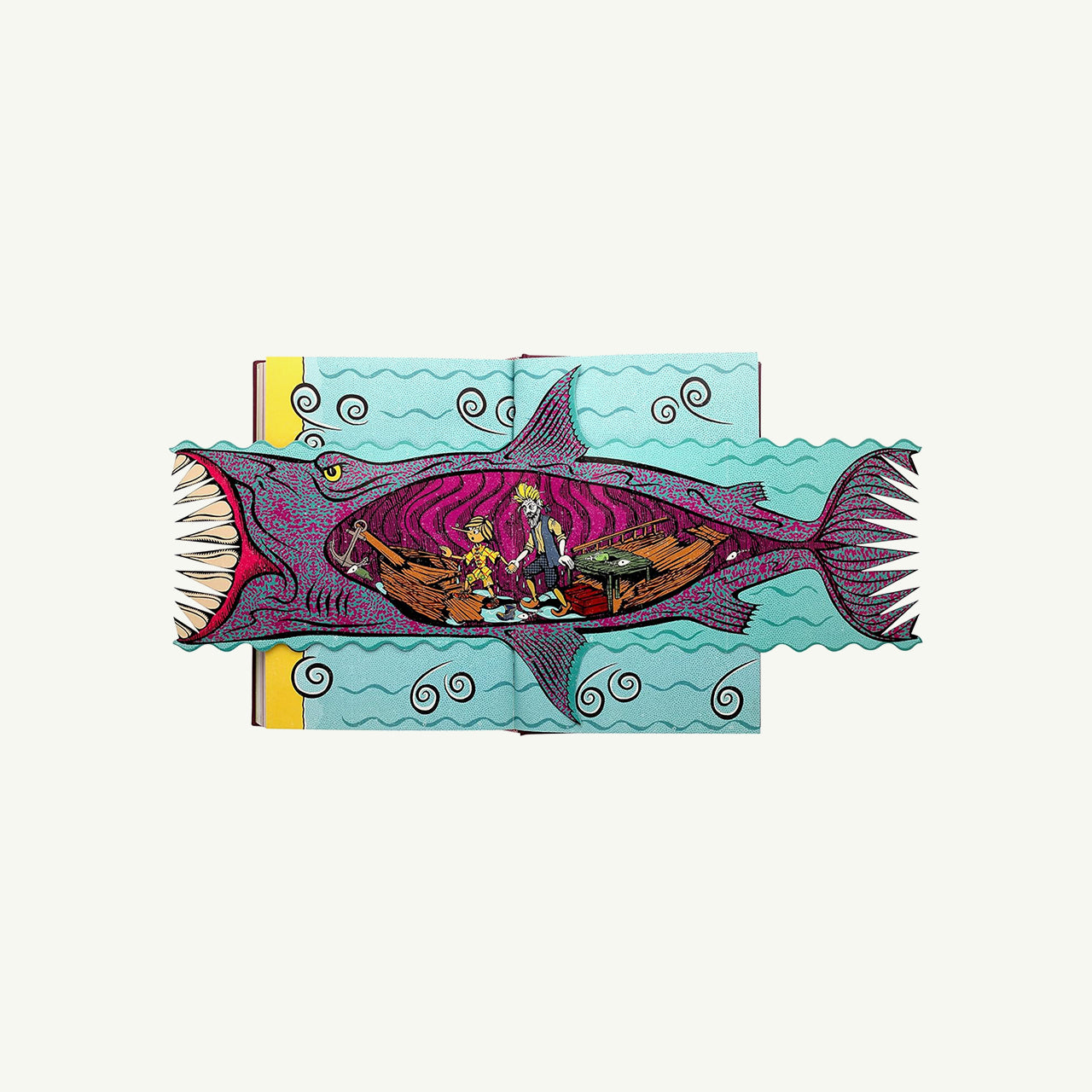 - A fold out shark revealing Pinocchio and Geppetto inside