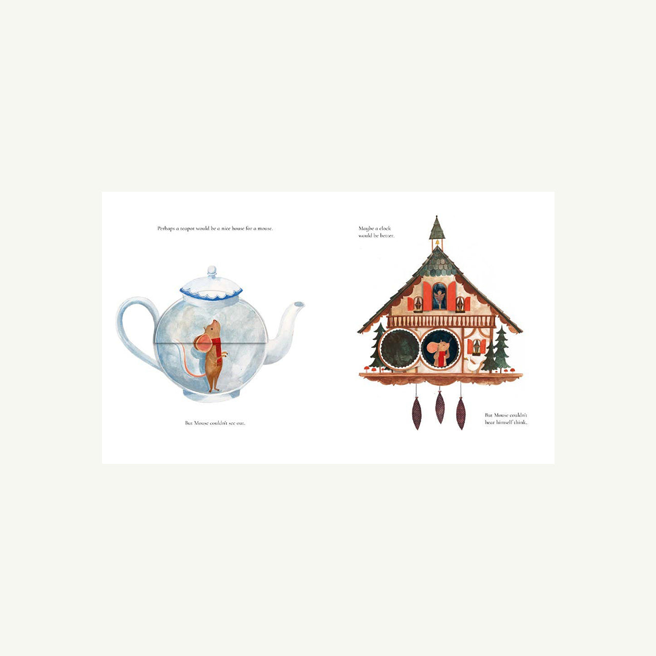 Olivia lives in a cheerful house with a little red door. Just behind it, in an old oak tree, lives her neighbor, Mouse. But when a storm comes rumbling through and topples Mouse’s home, Olivia sets out to help her friend find a new one. House after house, nothing feels quite right until she discovers that the perfect place has been waiting all along.
