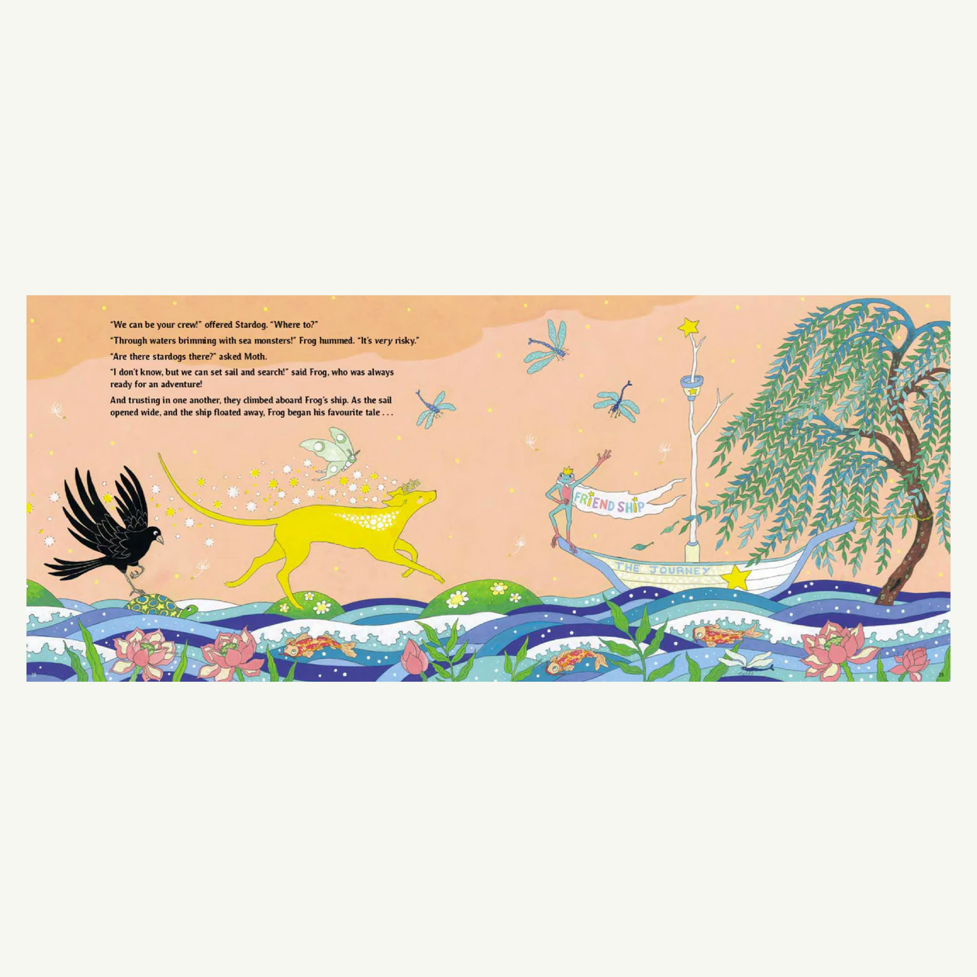 The Last Stardog is a tender and luminous tale about friendship, longing, and the power of dreams. Each night, Stardog dreams the same dream — of not being alone. But when her loneliness grows too heavy to bear, she tumbles from the sky and lands on Earth, where the familiar fades and the unknown begins. Determined to find others like her, Stardog embarks on a shimmering journey through strange lands and starry nights, meeting a butterfly, a crow, and a tiger who help her discover that sometimes the journey toward our dreams brings the most magical connections of all.