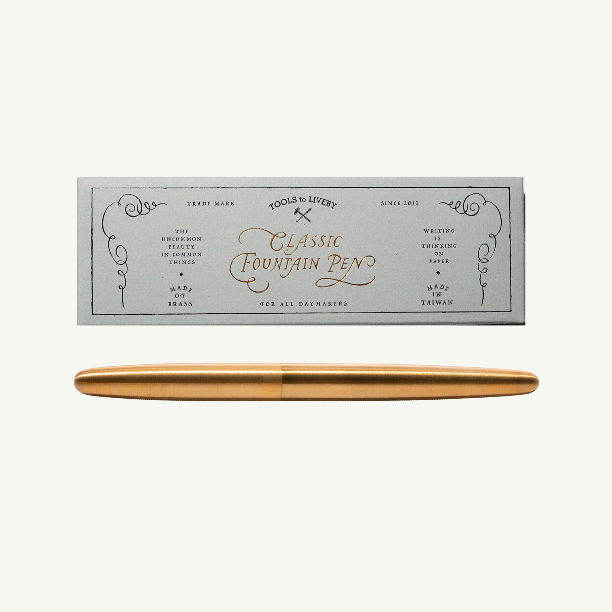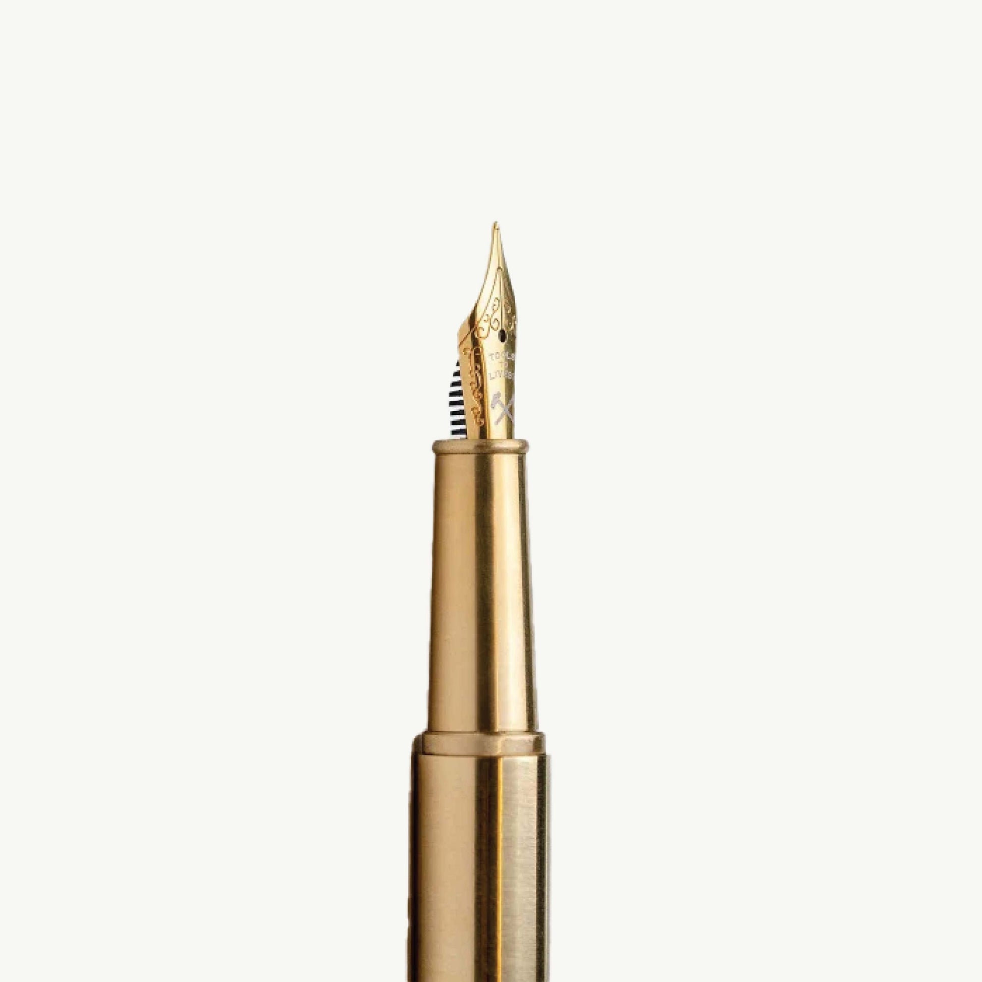 The simple and elegant barrel of the pen is made from brass and the brand name 'TOOLS to LIVEBY' and the logo are engraved on the nib. The F nib allows for delicate writing from the get-go.